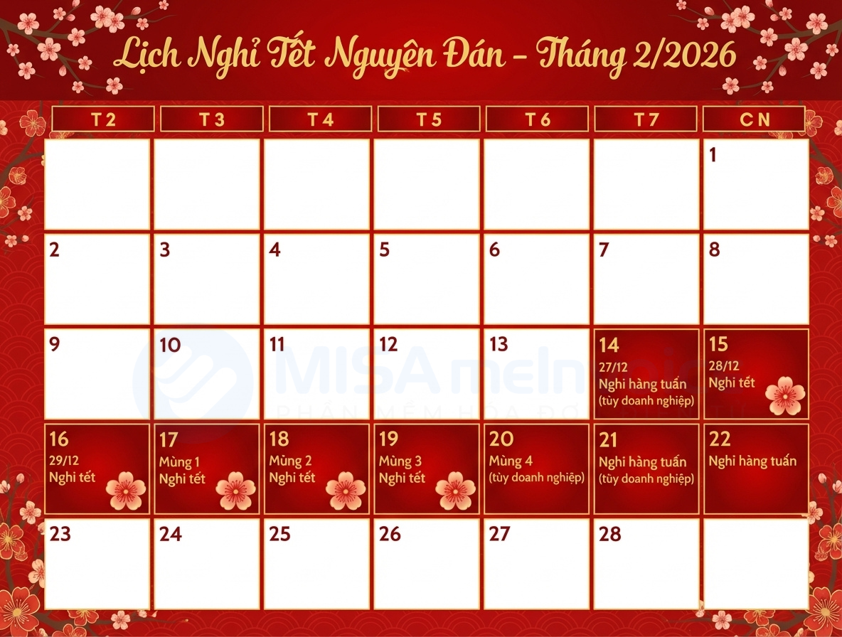 Lịch nghỉ Tết Nguyên Đán Bính Ngọ 2026